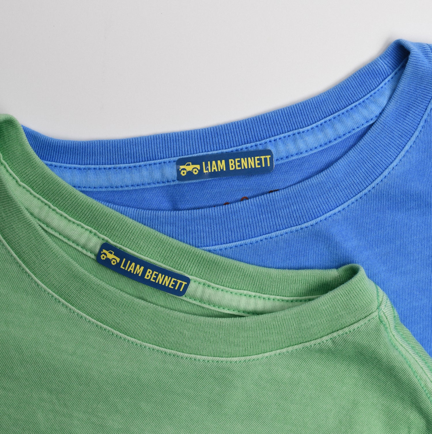 Label Daddy labels should always be applied by an adult or under adult supervision. To make sure that your labels will work as expected, it's important that you order the correct size label for your application. Every label page on our website gives you details about the specific label and what you can use that label on. For best results, our clothing labels should be applied to a garment’s care tag. If no care tag is present, apply the label to a garment’s brand imprint (the stamped area where a company will provide their logo or care information). We do not recommend applying the labels directly to fabric, as it may not have a strong enough surface for the adhesive to bond to.